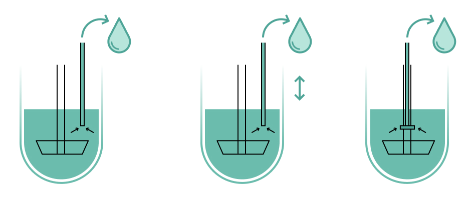 Отбор проб в определенные моменты времени во время тестирования растворения необходим для получения желаемого профиля растворения тестируемого лекарственного препарата. Помимо параметров, связанных с прибором, таких как размеры, материалы, геометрия определенных частей, например, расстояние канюли от стенки сосуда, фармакопея также определяет положение отбора проб во время теста: «В течение указанного временного интервала или в каждый из указанных моментов времени отберите образец из зоны, расположенной посередине между поверхностью растворяющей среды и верхней частью вращающейся корзины или лопастной мешалки, на расстоянии не менее 1 см от стенки сосуда». Точность отбора проб напрямую влияет на достоверность получаемых данных.
