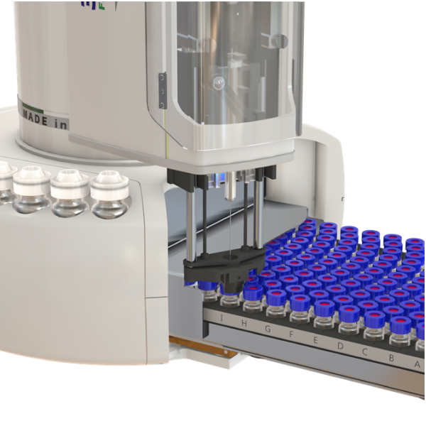 Автосамплер обеспечивает хорошую вместимость проб: доступен в стандартной версии с поддоном на 121 образец для виал по 2 мл.
