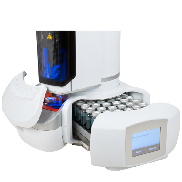 Прибор прост и удобен в управлении, благодаря сенсорному экрану с полноцветным интерфейсом и функцией управления в одно касание. После загрузки образца оператору достаточно ввести диапазон номеров флаконов и нажать кнопку СТАРТ. Смена типа анализа занимает 5 минут и не требует сложной разборки автосамплера: достаточно только заменить дозирующий шприц и лоток с пробами.