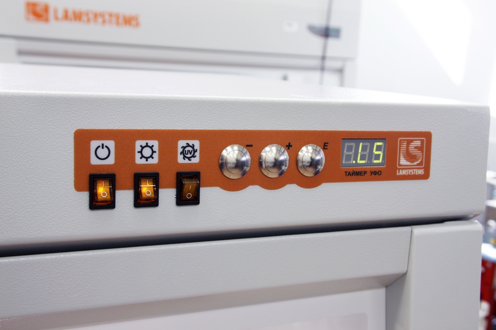 Для обеспечения абактериальной среды, бокс оснащен расположенным под столешницей блоком ультрафиолетового облучения. Лампа имеет защиту из нержавейки.