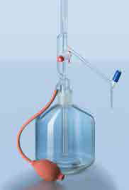 • С полоской Шелбаха, круговой основной градуировкой, с бутылью-резервуаром (объемом 2000 мл) и резиновой грушей.