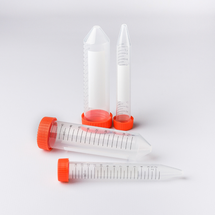 50 мл центрифужные пробирки Gluvex, V-образное дно, завинчивающаяся крышка отдельно, упаковка пакет 25x20 шт./уп.