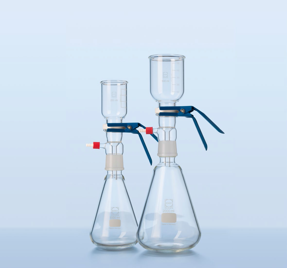 Фильтрующий аппарат DURAN подходит для фильтрации и очистки водных и органических растворов, а также для анализа загрязнения частиц и приготовления ВЭЖХ-сред.
