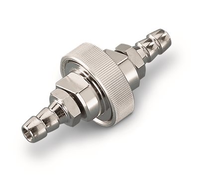 Держатель фильтра предназначен для поточной фильтрации под давлением до 5 бар. Резьбовое соединение G¼ с плотной гильзой гарантирует герметичное уплотнение ниппеля шланга и держателя без применения уплотнительных колец. Другие соединители, доступные в качестве принадлежностей, позволяют устанавливать держатель на редукционные клапаны или насосы с внутренней резьбой G¼ или внутренней резьбой Ga или на напорные баки с наружной резьбой Ga.