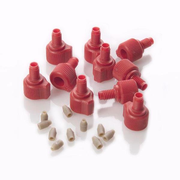 Фитинг 10-32 затягиваемый от руки Red Delrin Single Wing-гайкаMale/PEEK Ферулла для 1/16" OD капилляра Количество: 10шт/уп
