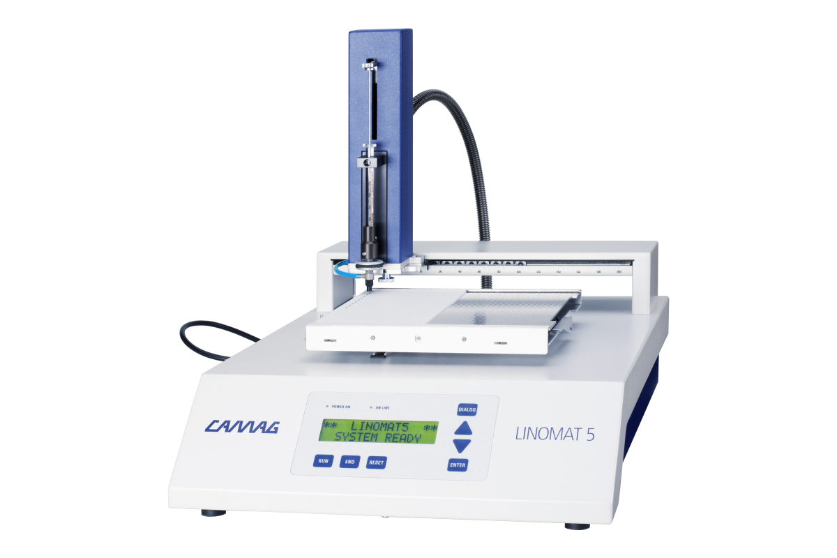 С помощью апликатора Linomat 5 пробы наносятся на ТСХ/ВЭТСХ пластины методом распыления. Нанесение осуществляется автоматически, вручную осуществляется только замена шприца, а также его заполнение и промывка. Прибор предназначен для рутинного использования.