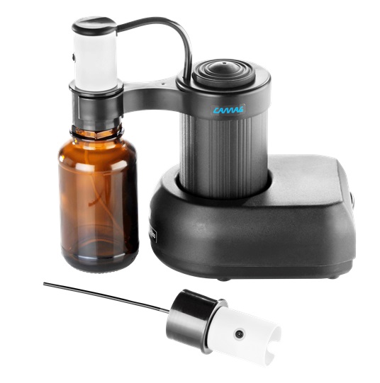 Комплект включает: блок зарядки, насос с держателем флакона и трубкой, головки типа A и B, флаконы на 100 и 50 мл с крышками.