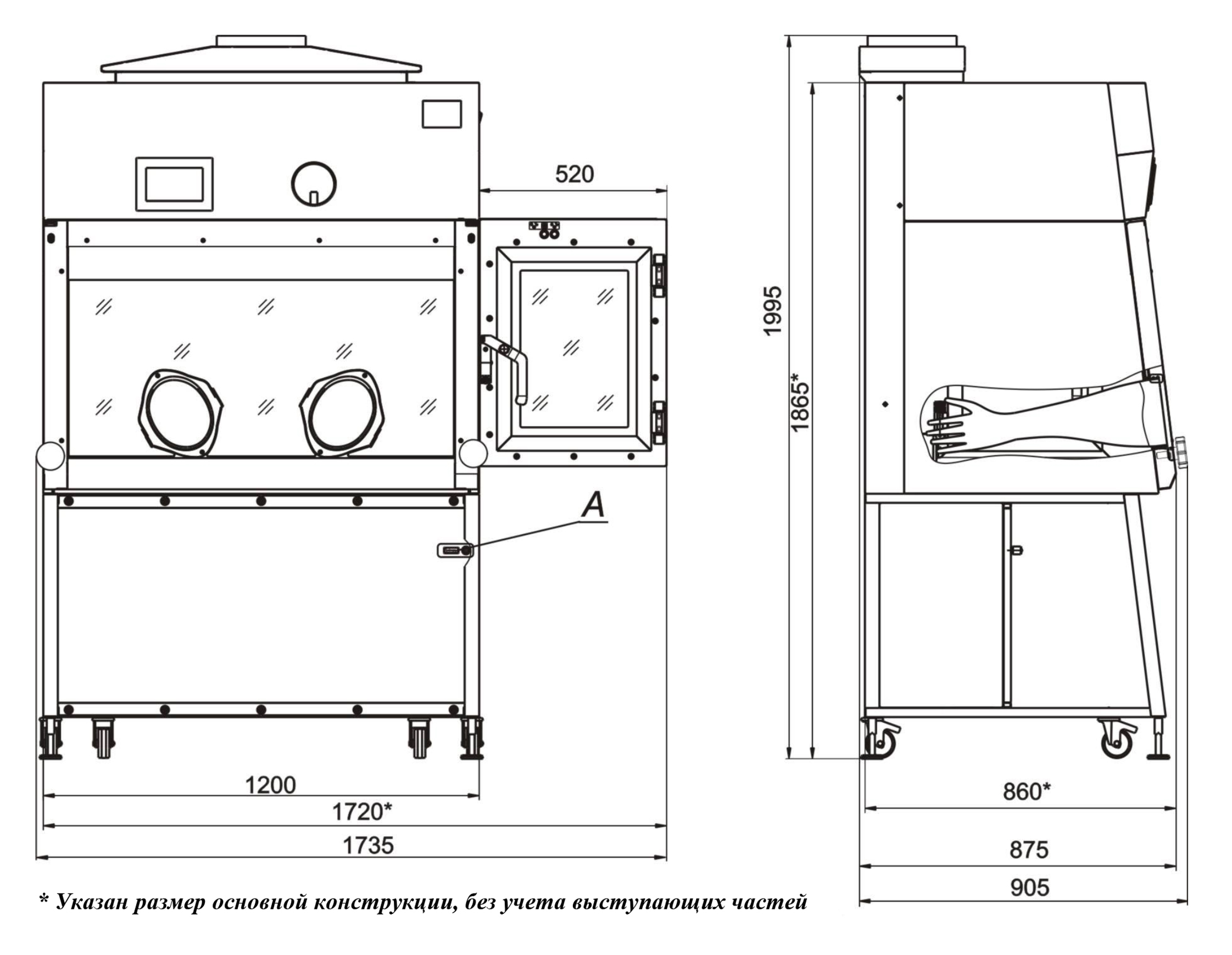 ✔ Фронтальное окно оснащено двумя овальными перчаточными портами, в которых установлены камерные перчатки; на перчаточных портах предусмотрены зацепления с направляющими для установки автономного модуля проверки целостности перчаток.