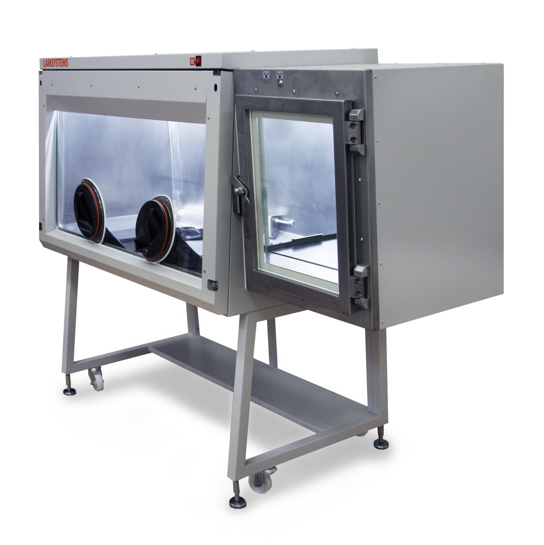 Для загрузки оборудования предусмотрена откидная передняя панель из триплекса. Также в переднем окне есть два перчаточных порта с бутиловыми перчатками, герметично изолированными он внутренней камеры. Перчатки позволяют работать с агрессивными соединениями, выдерживают высокие и низкие температуры. Это позволяет использовать бокс для проведения биотехнологических, аналитических исследований, применять устройство в медицине, производстве фармпрепаратов и других сферах.