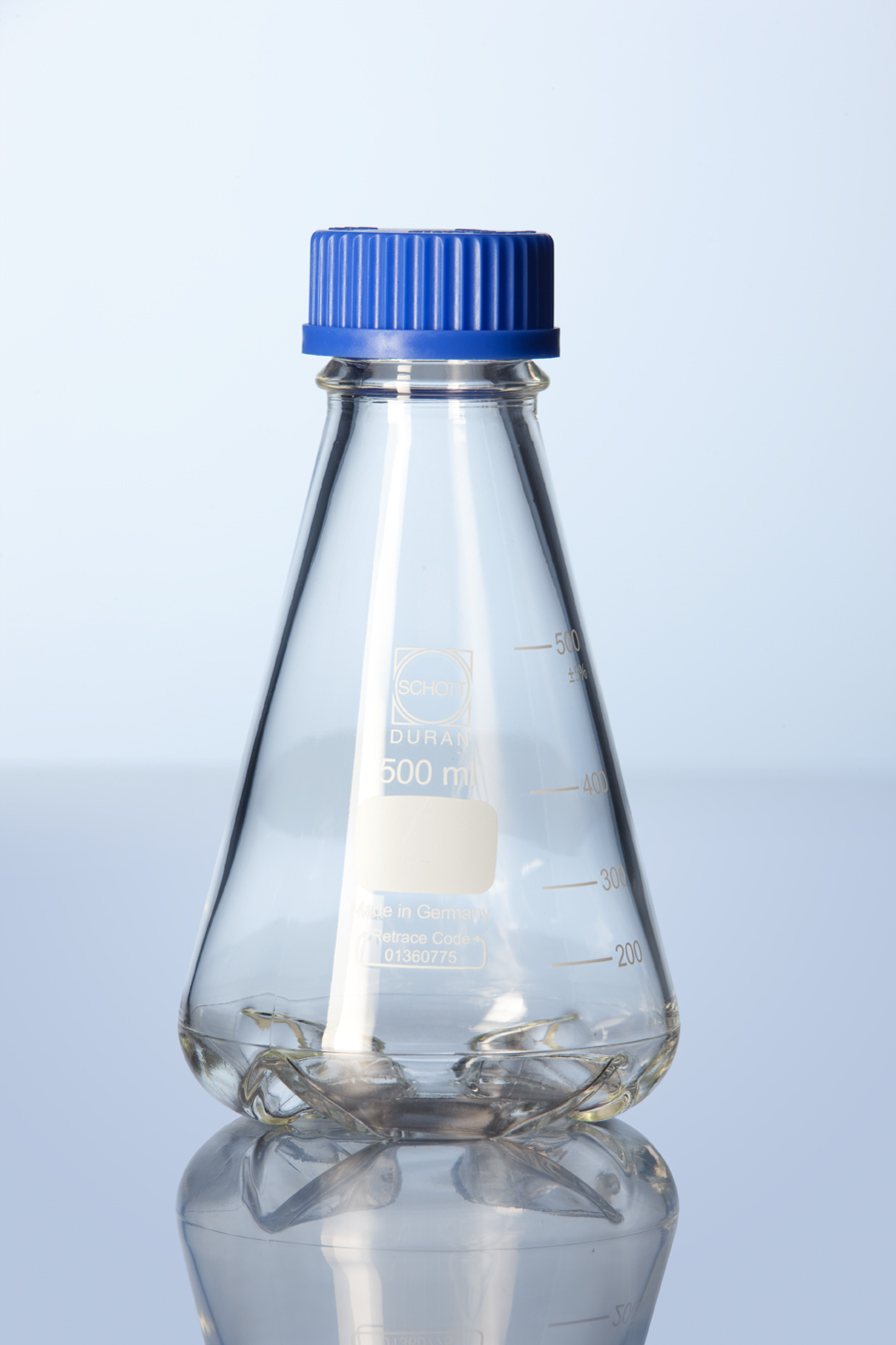 Колба с перегородками прерывает ламинарный поток и создает турбулентный поток, увеличивая площадь газового и жидкостного обмена, что обеспечивает перенос кислорода в большем объеме по сравнению со стандартными колбами Эрленмейера.