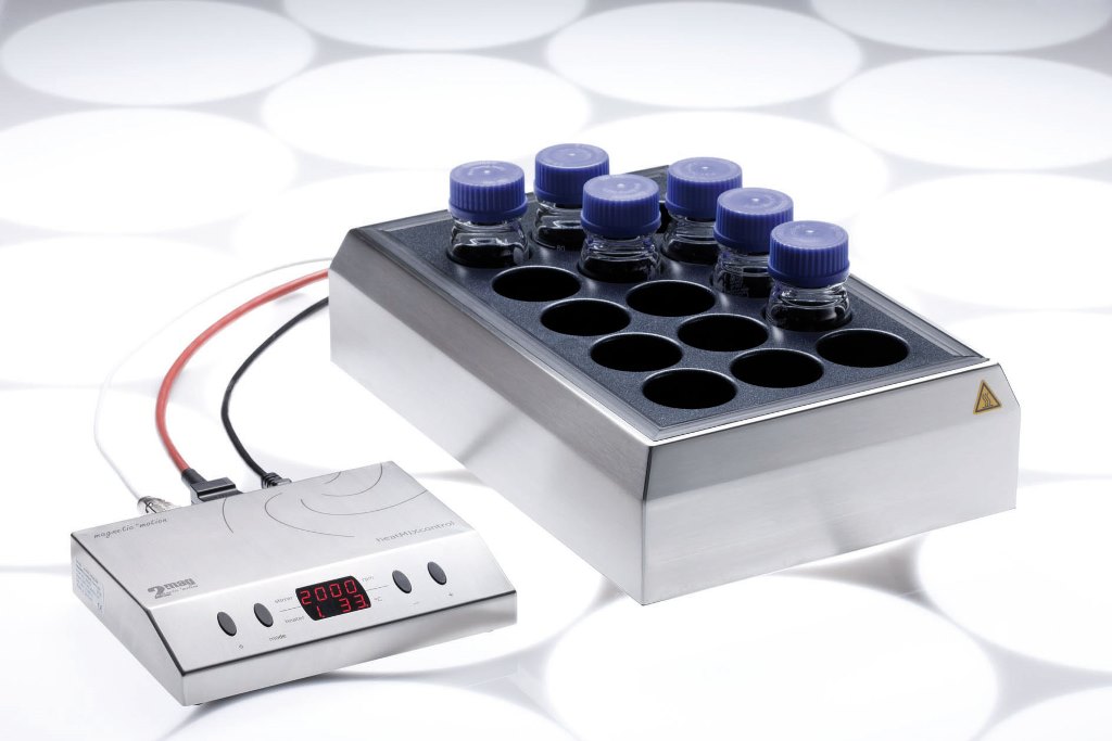 Массивный нагревательный блок из прочного алюминиевого сплава с покрытием из PTFE обеспечивает высокую химическую стойкость и облегчает очистку, минимально возможный температурный градиент внутри перемешивающих сосудов, встроенный электрический нагреватель, максимальная температура нагрева +200 °C. PowerDetect для автоматической компенсации физически определяемой потери мощности перемешивания, которая может достигать 40 % при высоких температурах, рама из нержавеющей стали с теплоизоляцией для снижения теплопотерь и экономии времени нагрева, а также для снижения риска получения ожогов от случайного прикосновения, защита от перегрева.