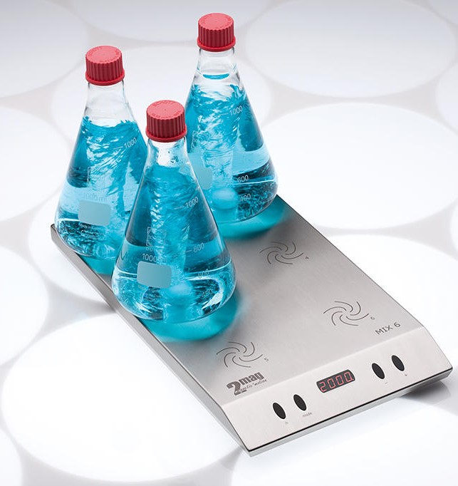 Полностью необслуживаемая концепция индукционного магнитного привода 2mag для быстрого перемешивания растворов. Ступенчатая регулировка мощности: более высокая мощности для перемешивания больших объемов или вязких растворов или сниженная мощность для длительной работы без нагрева.