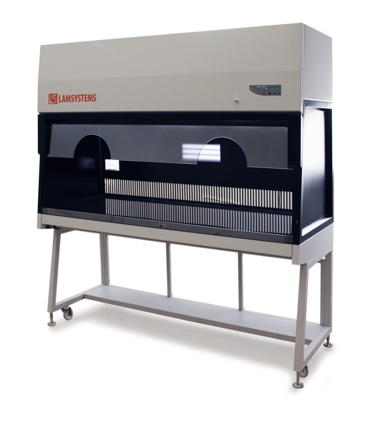 Ламинарный бокс на два рабочих места, во фронтальном стекле вырезы под микроскоп. Основной осветитель рабочей камеры имеет функцию регулировки интенсивности света. На задней стенке рабочей камеры встроен дополнительный осветитель. Рабочая поверхность бокса выполнена из зеркальной нержавеющей стали.