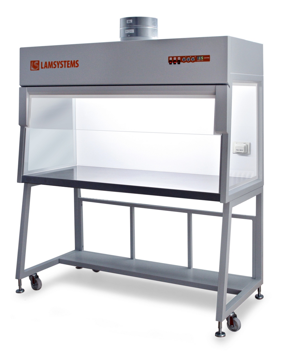 Вытяжной шкаф оснащен откидной передней панелью из закаленного стекла. Дверца удерживается в открытом положении газовыми амортизаторами. Боковые и задняя панели выполнены из металла. Внутри установлены столешница и поддон из нержавеющей стали.