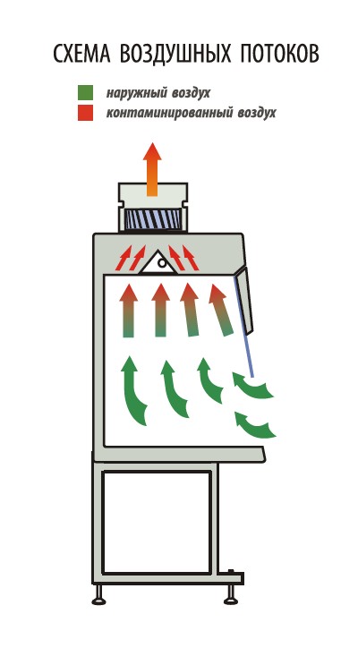 Шкаф используется совместно с наружной вытяжкой, к которой он подключается с помощью гофрированной трубы. Благодаря этому все газообразные вещества, образующиеся в рабочей зоне, выводятся из помещения.