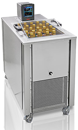 Пивной термостат от компании Huber оснащается удобным блоком управления, а также позволит смоделировать стандартный 24-часовой цикл хранения продукта, во время изменения температуры от 0С до +60С. В изготовлении данных термостатов не применялись CFC-фреоны, поэтому приборы имеют III класс безопасности. Все детали, которые контактируют с влагой, а также сам корпус, изготовлены из нержавеющей стали.