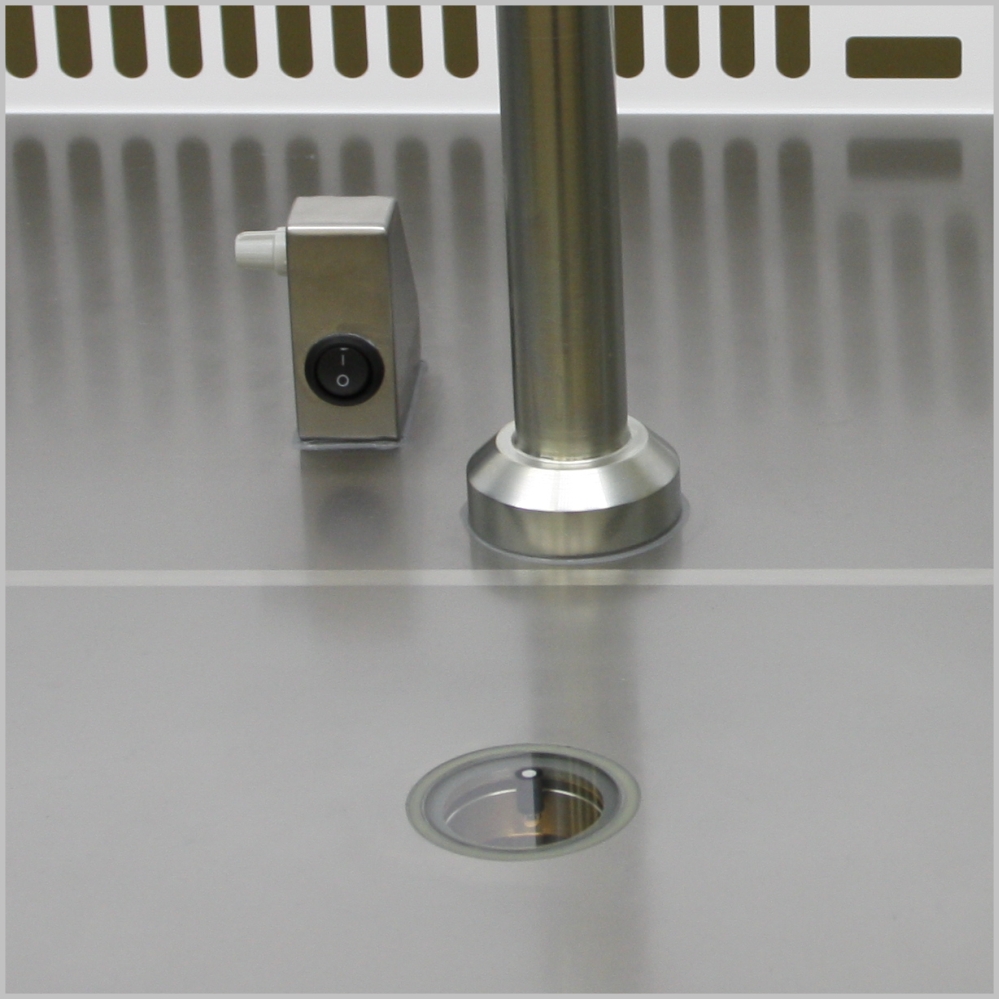 Столешница выполнена из нержавейки, оснащена опцией подогрева. Благодаря встроенной автоматике точно поддерживается заданная оператором температура.