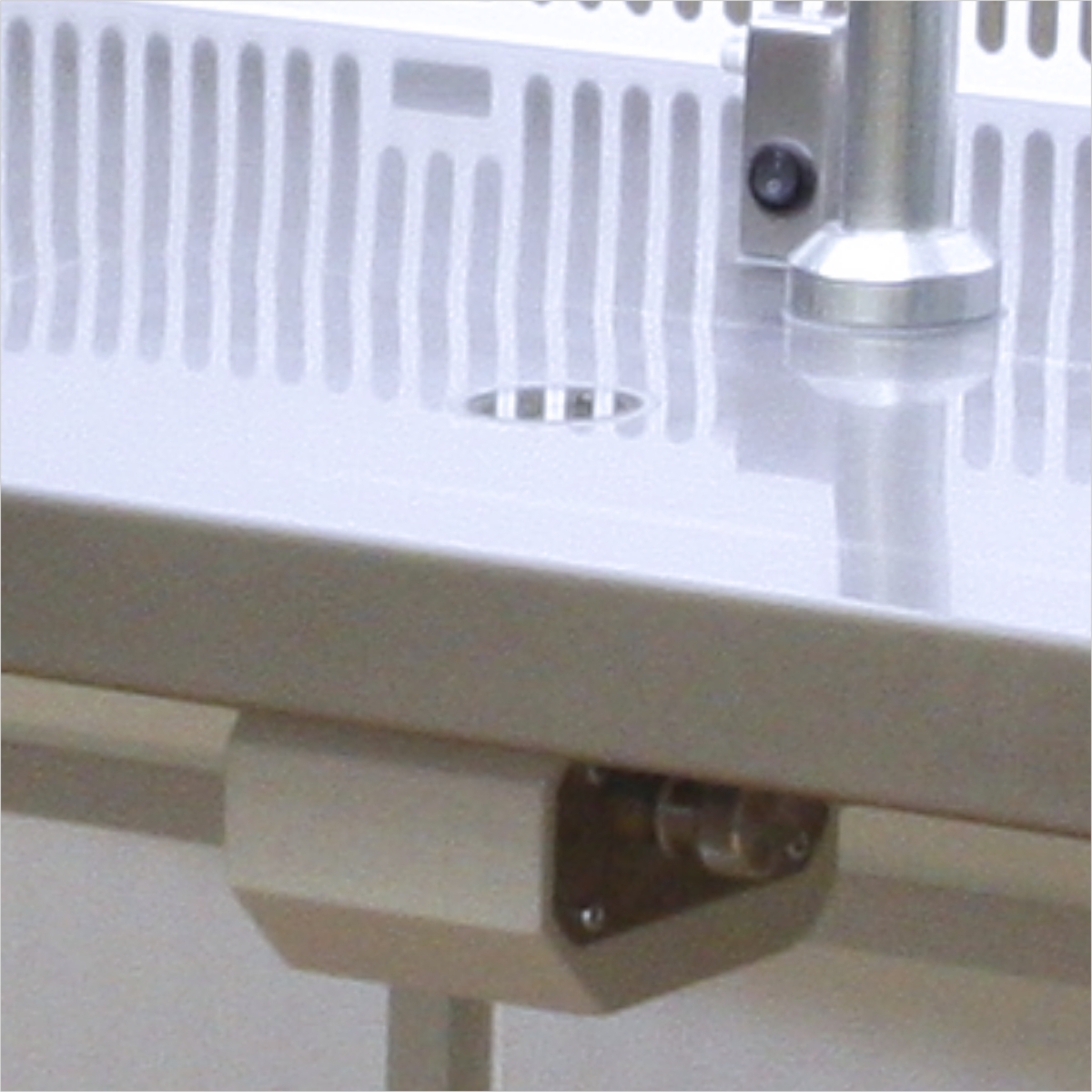 Передняя панель выполнена из стекла, имеет специальную прорезь для размещения микроскопа. В качестве дополнительной опции рабочая станция может быть оснащена монитором.