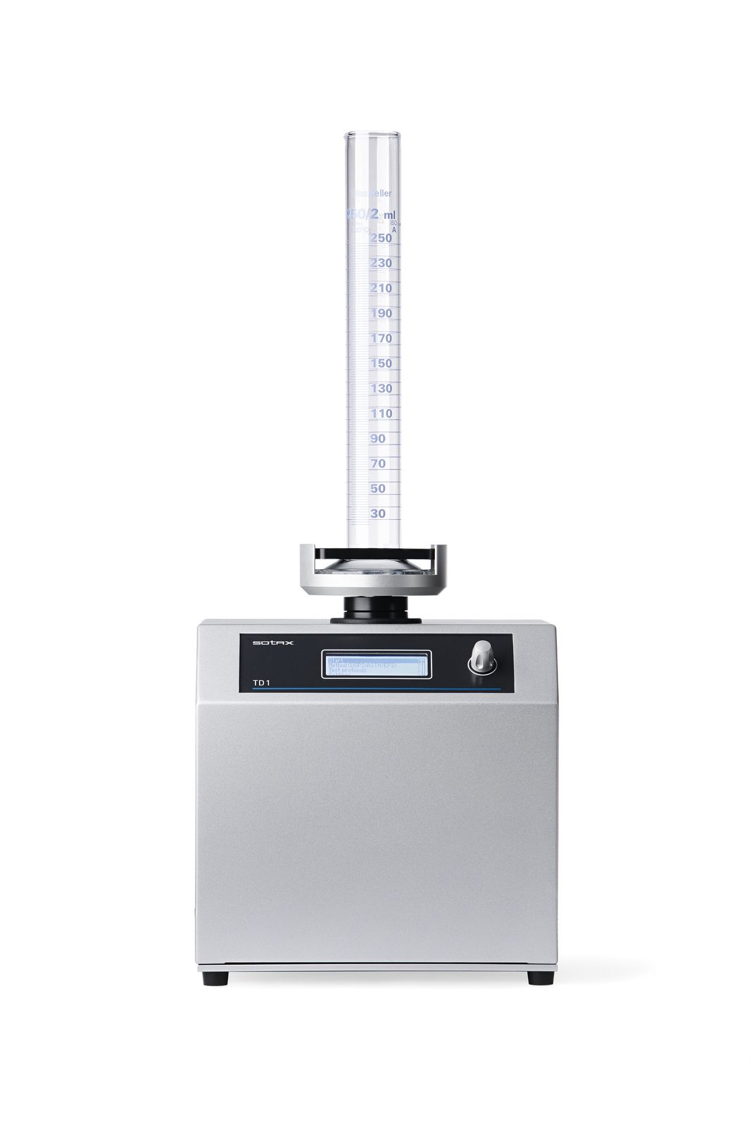 TD 1 оснащен только одной станцией цилиндров для всех методов испытаний — на «легко блокируемые» держатели можно загружать разные цилиндры, что обеспечивает свободное вращение цилиндров и, следовательно, горизонтальную поверхность порошка для четкой точности считывания. Устройство также имеет встроенный датчик, который может обнаруживать наличие переходника (адаптера), который автоматически настраивает устройство на соответствие правильному методу тестирования (например, с адаптером → USP 2; без адаптера → USP 1).