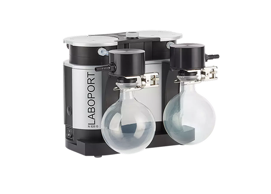 Химически стойкая откачная система, использующаяся для работ с экстремально агрессивными/коррозийными газами и паром. Вакуумная система Laboport SR 820 G с объемом потока 20 л/мин состоит из химостойкого мембранного вакуумного насоса, основания и двух сепараторов на всасывании и выхлопе.
